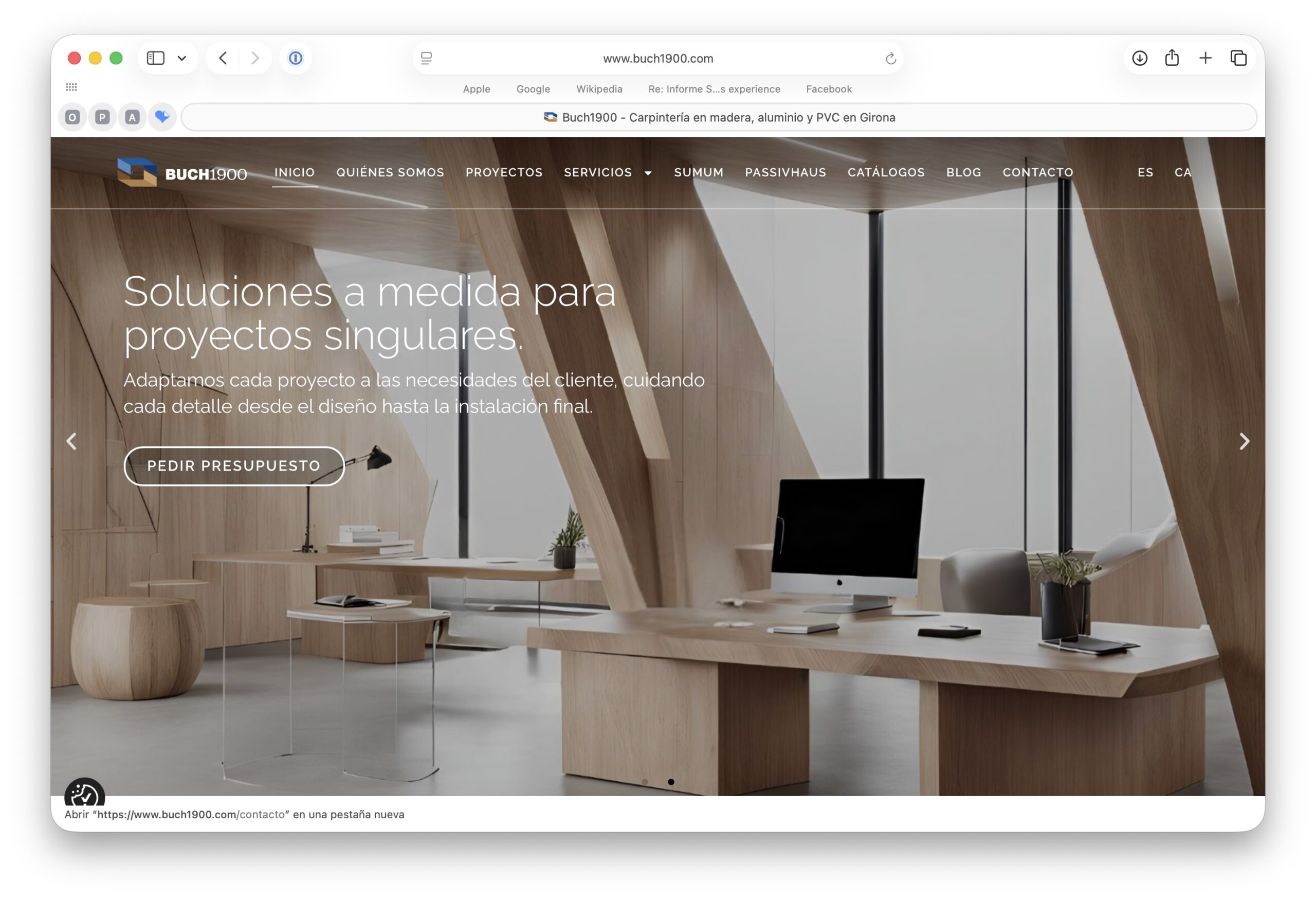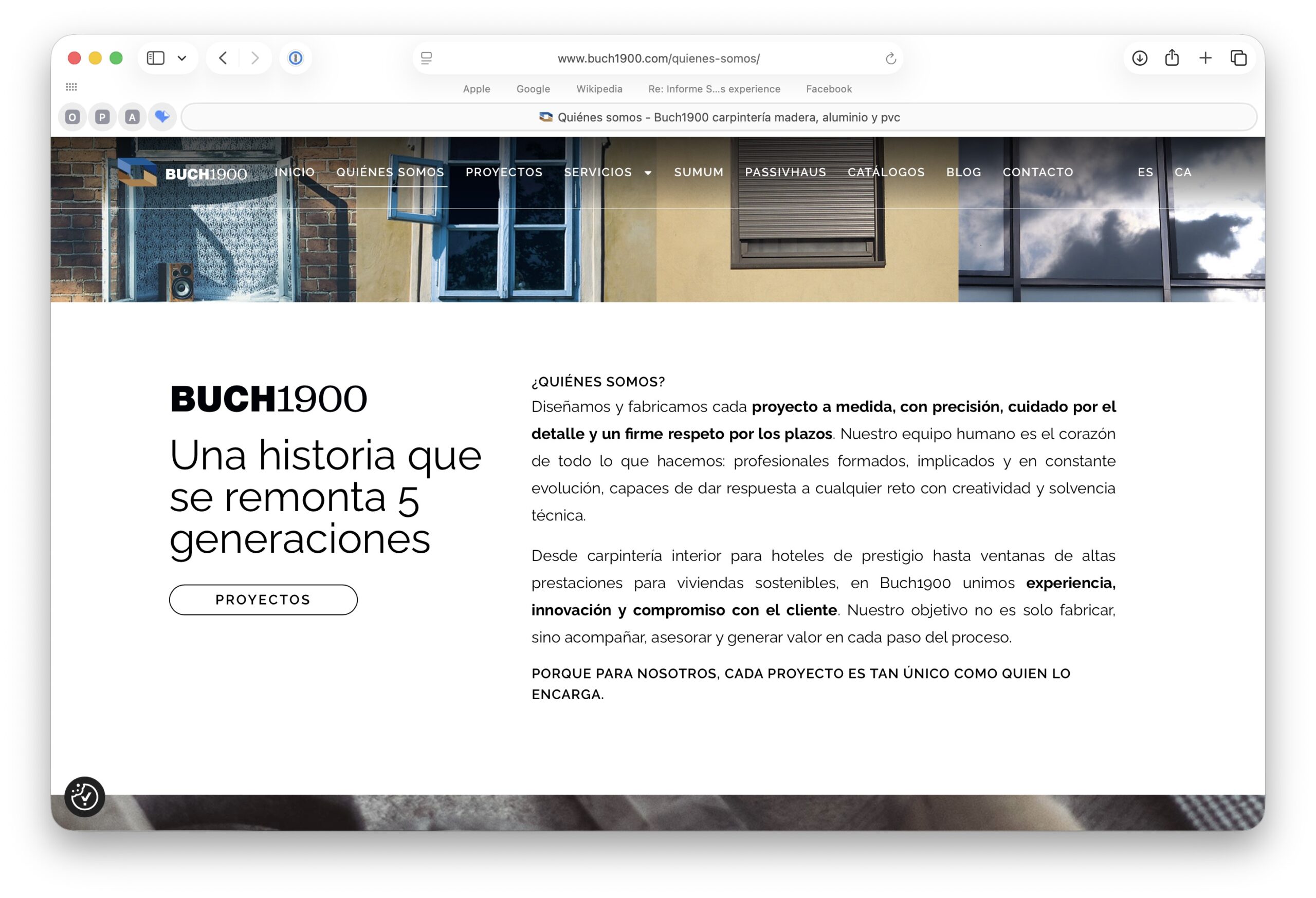 Buch1900 és una empresa líder en construcció, interiorisme i projectes clau en mà a Barcelona i la Costa Brava. Amb més de 100 anys d’experiència, la seva imatge mereixia una web a l’altura del seu prestigi. El nostre objectiu era renovar completament la seva presència digital, posant en valor el seu saber fer, el seu estil atemporal i la qualitat que defineix cadascun dels seus projectes.